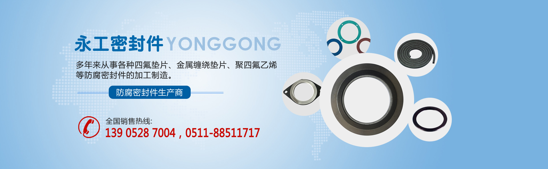 江蘇省揚中市永工密封件有限公司,位于美麗富饒的長江三角洲中,氣候宜人,交通方便,是一家專業生產四氟墊片、金屬纏繞墊片、聚四氟乙烯等防腐密封件的企業。